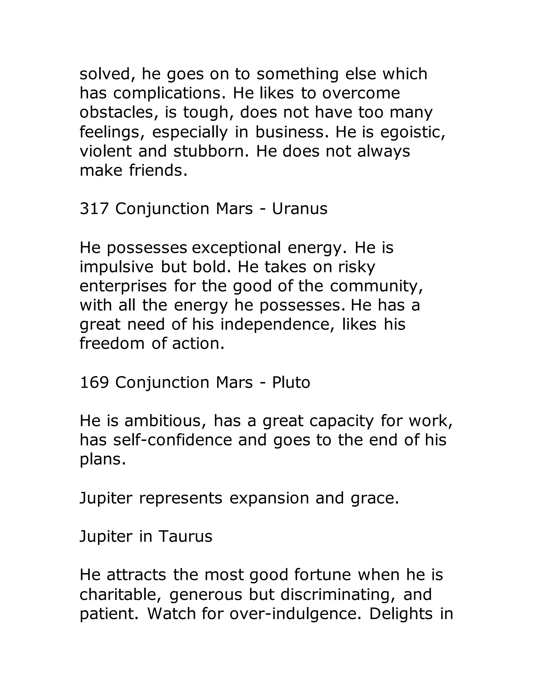 Mars in the Signs: Astrology | Cafe Astrology .com Mars in Taurus "Slow and steady wins the race" could easily be a motto for Mars in Taurus. These goal-oriented people are not known for their speed, but their staying power is tremendous. Generally calm and easygoing people, Mars in Taurus natives can have powerful tempers when they're overly provoked.